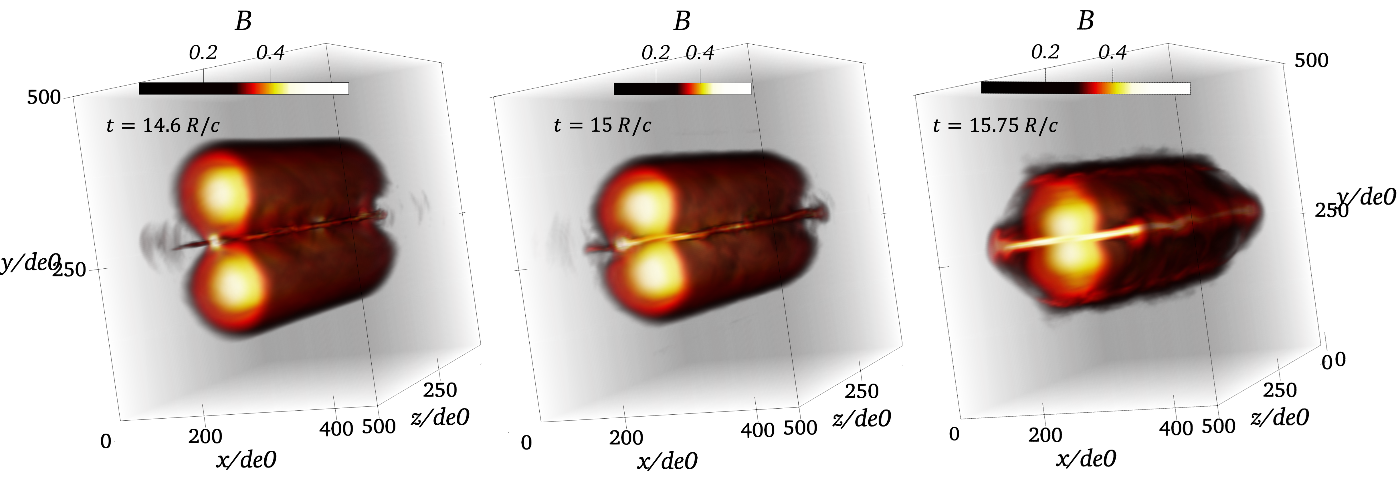 2D and 3D kinetic simulations of driven reconnection in force-free flux tubes.